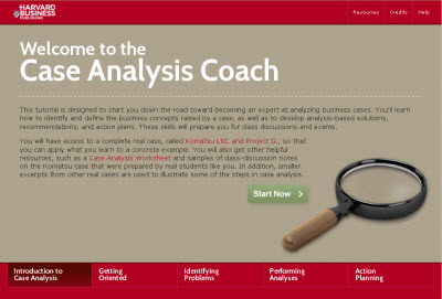 ![]() The Case Analysis Coach was created for Harvard Business Publishing to help students new to the case method to become familiar with the process. The "case method" is an approach to learning that encourages students to extract useful lessons from descriptions of the experiences of others ("cases"). Students study accounts of specific events in order to discover general principles that they can apply in other situations As the lead instructional designer I was responsible for the initial research and converting the copy of author Robert D. Austin, Professor, Management of Creativity and Innovation, Copenhagen Business School into a workable web layout. |